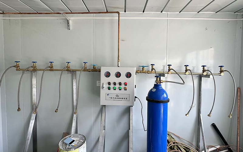 通過(guò)匯流排并聯(lián)多組高壓氧氣瓶實(shí)現(xiàn)連續(xù)供氣。系統(tǒng)結(jié)構(gòu)簡(jiǎn)單、初期投資最低;但儲(chǔ)氣量有限,需頻繁更換氣瓶,操作安全風(fēng)險(xiǎn)較高;運(yùn)行成本直接取決于氧氣采購(gòu)價(jià)格和人力成本。